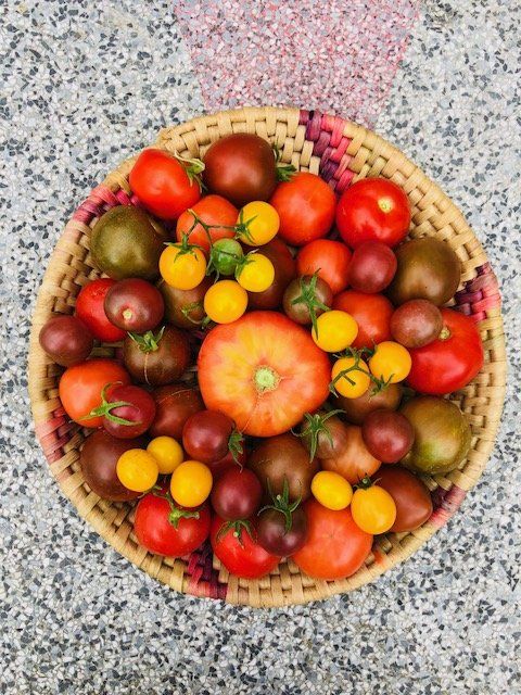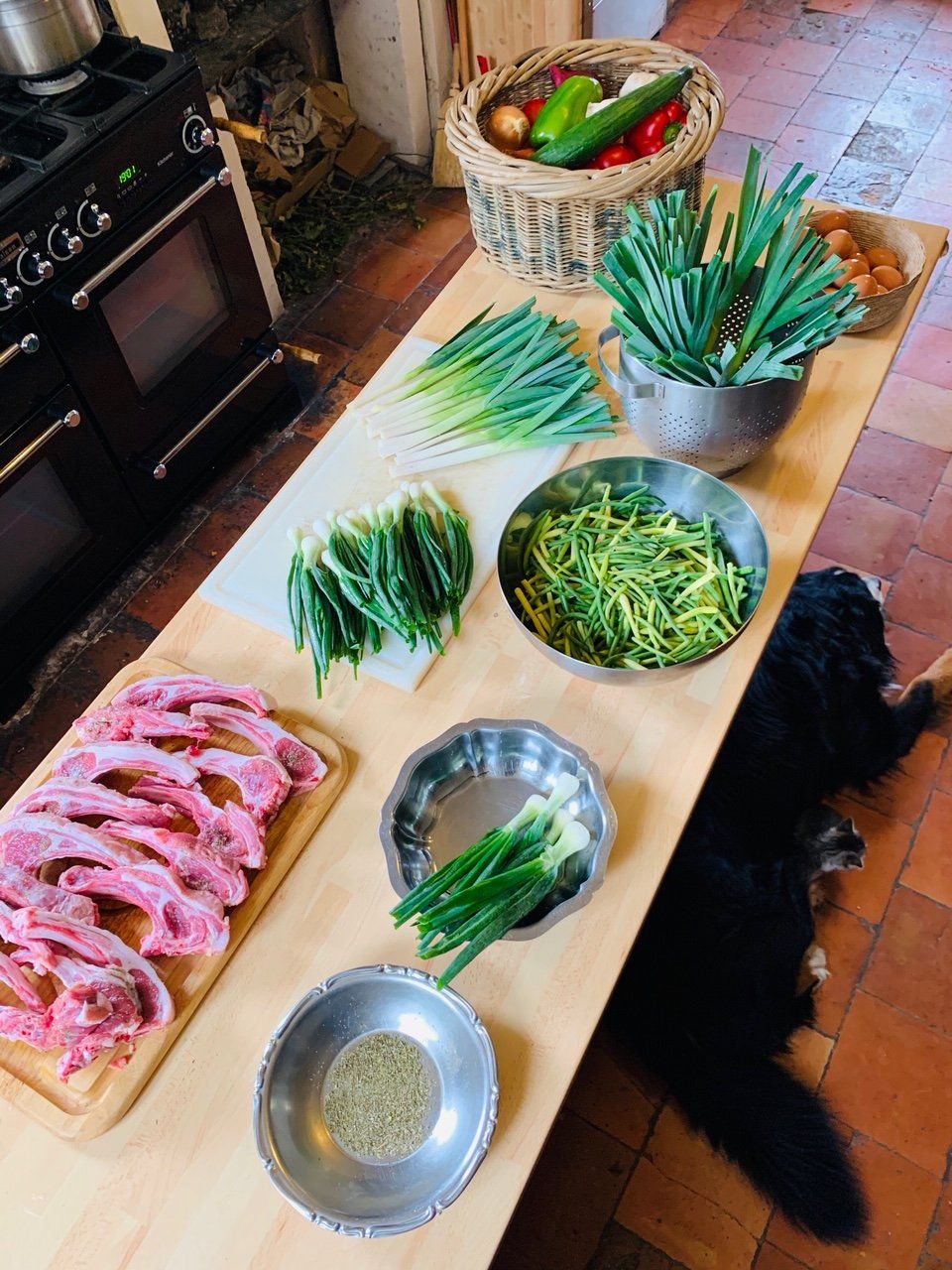 Nous produisons sur place dans notre potager en été bons nombre de produits que nous servons (légumes, aromatiques, certains fruits, œufs).